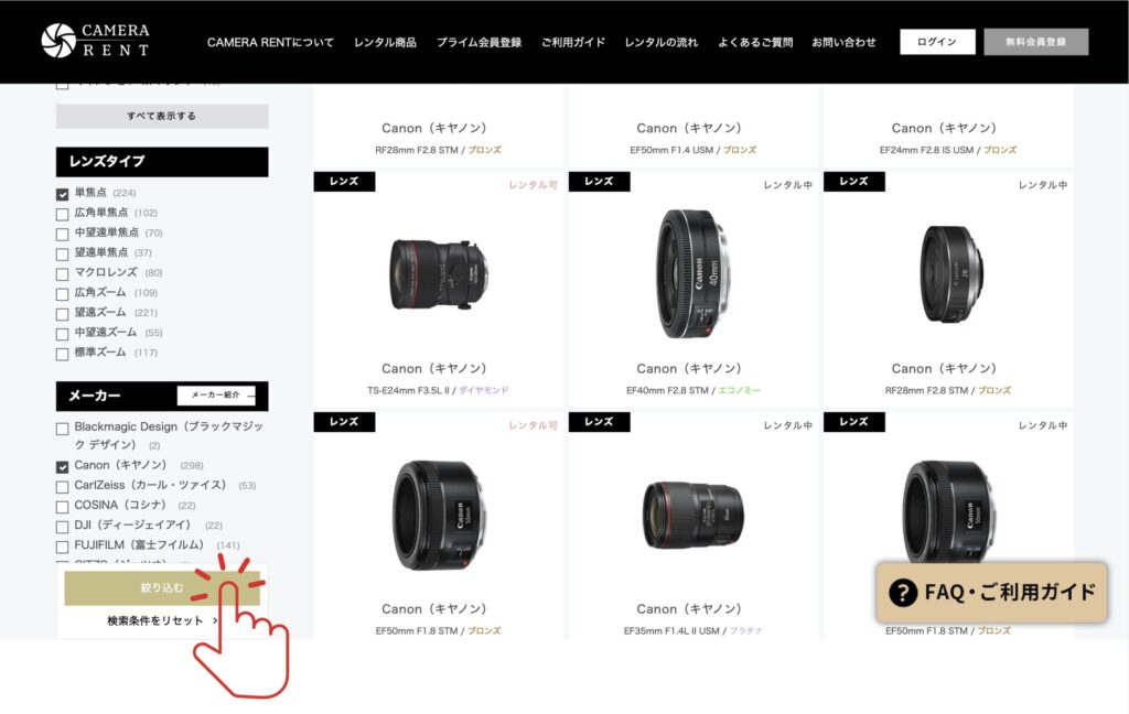 CAMERA RENT でレンズを借りる方法(PC画面で解説)