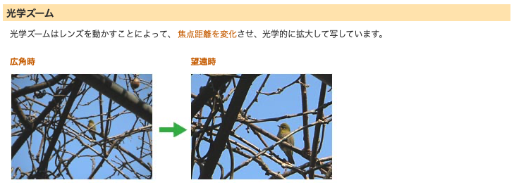 光学ズームとは、レンズの仕組みを使って実際に被写体を大きく写す方法です。