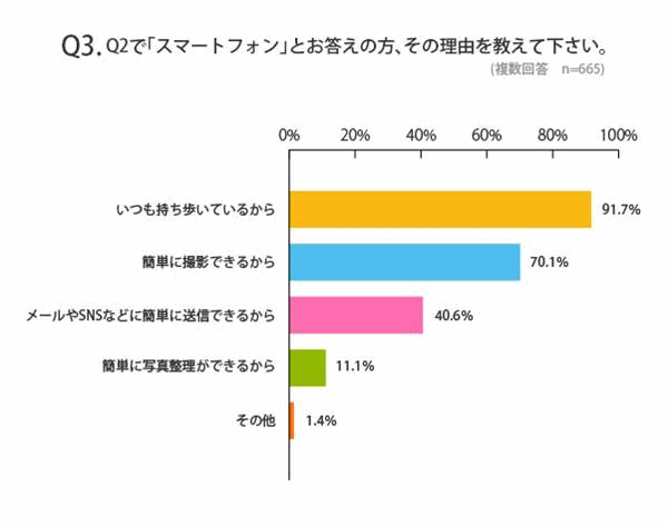 その結果によると「いつも持ち歩いているから」「簡単に撮影できるから」といった理由が多く、